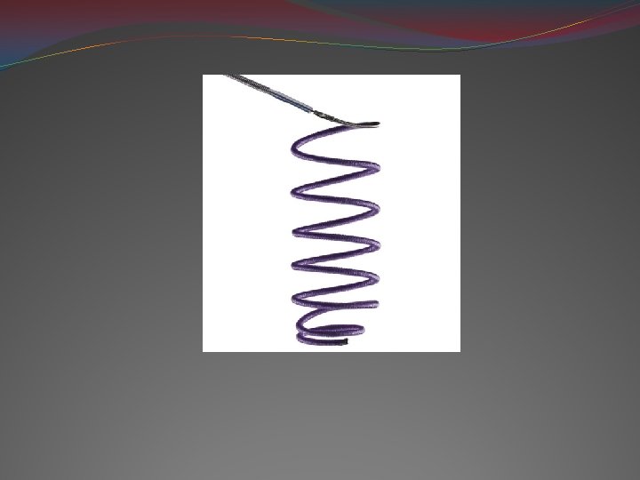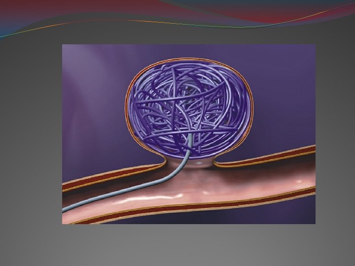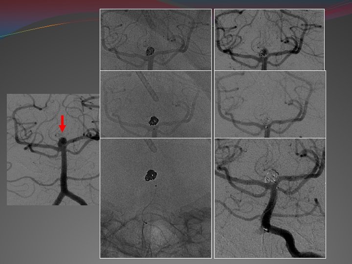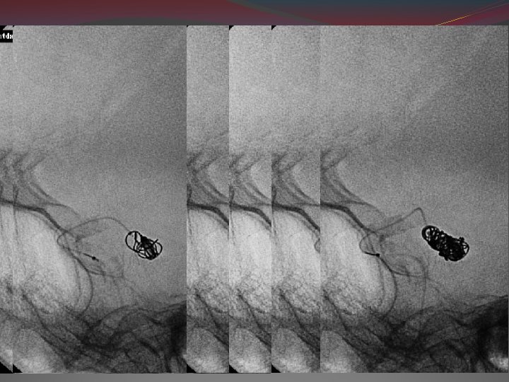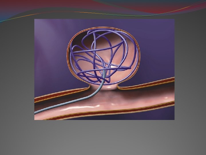 Angiographic Efficiency and Recurrences � The main drawback of coil embolization is its low angiographic efficiency. The percentage of complete aneurysm occlusion after coil embolization (27%– 79%, median 55%) remains lower than that achieved with surgical clipping (86%– 100%). � However, about 90% of coiled aneurysms achieve near total occlusion or better. Incompletely coiled aneurysms have been shown to have higher aneurysm recurrence rates, these being 7% to 39% for coil embolization compared to 2. 9% for surgical clipping. � Recurrence is defined as refilling or the neck, sac, or dome of a successfully treated aneurysm as shown on an angiogram. The long-term clinical significance of incomplete occlusion following coil embolization is unknown, but in one case series, 20% of patients had major recurrences and 50% of these required further treatment.
