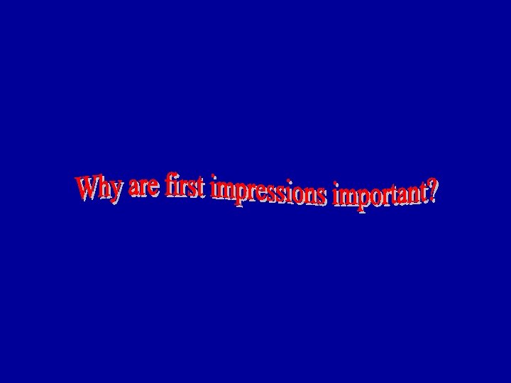 Objectives • Determine the importance of first impressions • Identify key components of first impressions • Demonstrate: Proper handshaking methods Proper introductions Proper posture • Determine proper attire • Compose a poster advertising one thing to do to make a great first impresssion