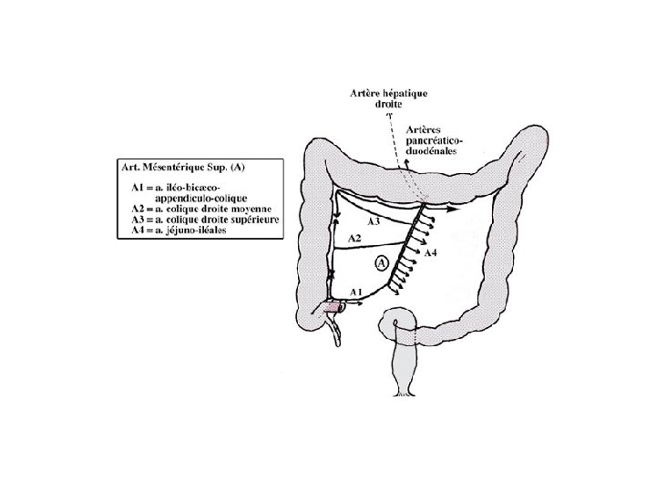 D - vascularisation Ø les artéres : se sont les artéres jéjunales et iléales ; branches de l » artére mésentérique supérieure. ü Au nombre de 12 à 15 naissantsq du bord gauche de l’artére et descendants dans le mésentère. ü Leurs anastomoses decrivent des arcades vasculaires de 1 er ; 2ème ; 3ème et 4ème ordre. ü Des arcades de 1 er ordre naissent perpendiculairement à l’intéstin les artéres droites.