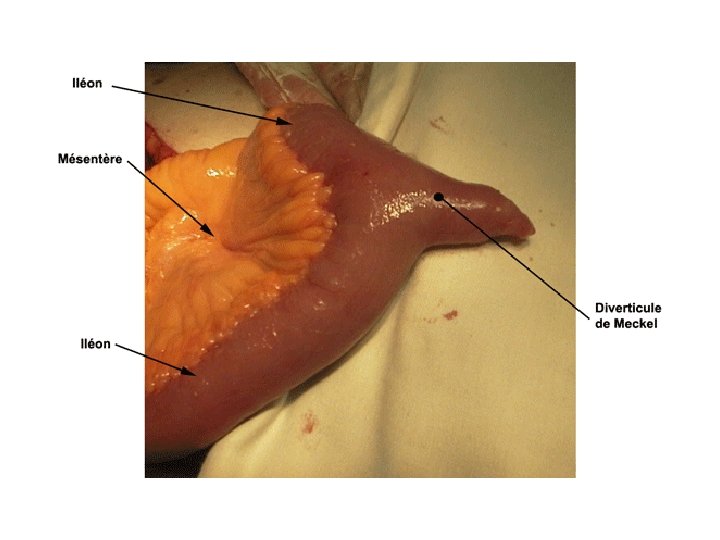 B - généralitées Ø ils sont contournés avec des anses intestinales d’abord horizontales puis verticales. Ø Ils sont situés dans la région sous méso-colique; les quatre cinquièmes étant à gauche de la ligne médiane. Ø Longueur de 6 m ; calibre de 3 cm à 2 cm. Ø Dans 2% des cas existe à 1 m de l’angle iléocaecal , le vestibule du conduit vitellin (diverticule de meckel) uni à l’ombilic par un cordon fibreux.
