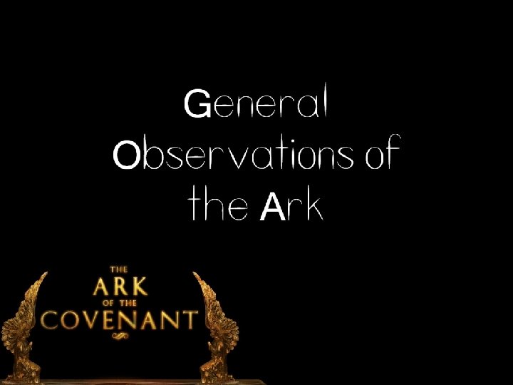 • In God's sight, the Ark was the main thing, and the entire Tabernacle was built around it. • God begins the whole Tabernacle picture with these words: ". . . Let them make me an Ark. " • God presented His Glory and then gave instructions to build the house to suit it. • God sent His Presence and then gave His Son (John 1: 14) to house it.