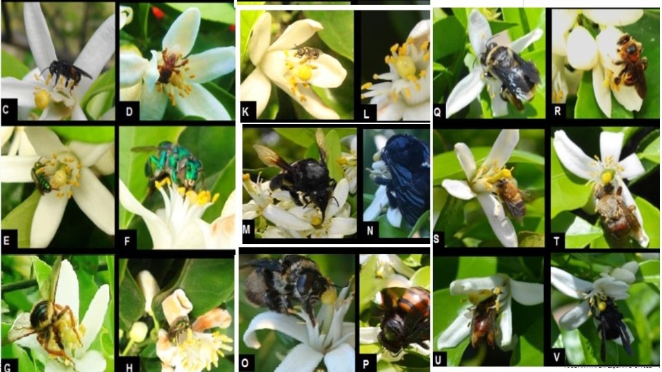Efeitos dos Agrotóxicos nas abelhas Além dos efeitos letais, os subletais relacionados a alterações comportamentais dos insetos são descritos em vários estudos; e, mesmo poucos nanogramas de ingrediente ativo podem comprometer a percepção gustativa, o aprendizado olfatório e a atividade motora das abelhas (Faria, 2009). Plebeia droryana – polinizadora do morangueiro Centris annalls – polinizadora da acerola