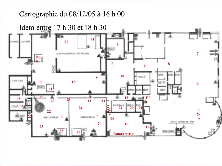 Mesures de CO dans un garage • Mesures réalisées par l ’IUSTE • Motivation : symptomatologie présente chez les mécaniciens mais également chez le personnel des bureaux • Signes : céphalées, vertiges, irritations des voies aériennes supérieures.