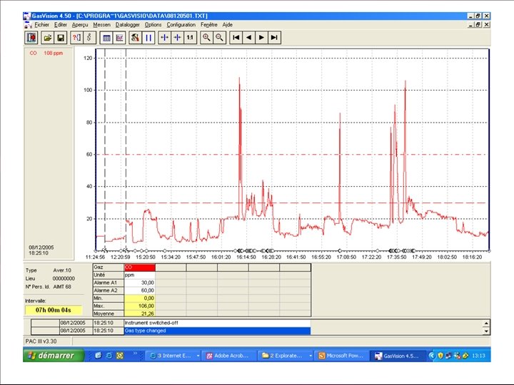 Conclusion • Mauvais confinement avec taux élevé dans les bureaux • Absence de ventilation générale dans certains secteurs • Insuffisance des aspirations à la source • Accumulation du CO au cours de la journée • Pics lors des contrôles anti-pollution