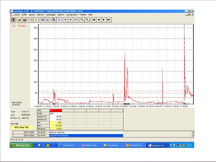 Mesures et traitement • Mesure du CO par les pompiers sur place : 250 ppm • Hb. CO à l ’admission : 18% • Traitement par OHB avec amélioration de la symptomatologie • Matériel loué à une société extérieure sans conseils d ’utilisation