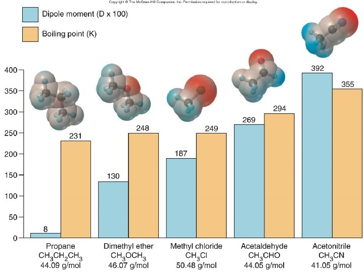 Physical properties like bp, surface tension, viscosity, and Pvap depend on – Size of molecule, MM • Generally, as increase MM, increase the physical properties – bp gets harder (requires higher temp), higher surface tension and more viscous – Strength of IM forces (depends on type)