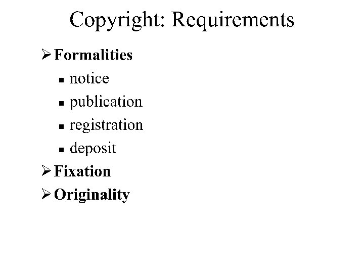 The Nature of Copyright • Long-lived, but narrow protection • Life of author plus 70 years • Protects only “expression, ” NOT underlying idea • Traditonally, most effective in the analog “copyright industries” – Publishing – Movies – TV – Radio Expanding Impact Now