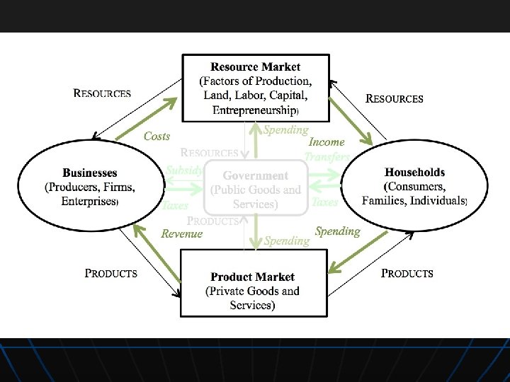 Circular Flow Model n n Circular Flow- money along with goods and services freely flow between each other Resources leave a business and go to a consumer, then leave a consumer and go to a business • Ex. Getting paid by a business then spending the money with another business