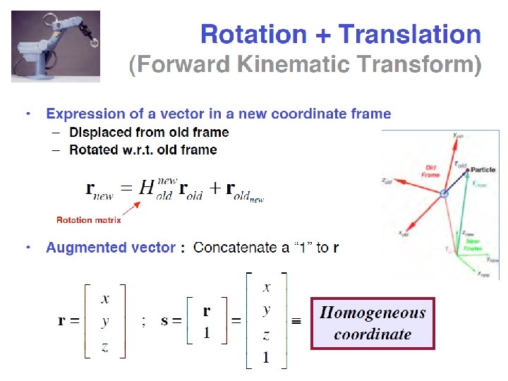 DOF versus types of robots Non-Holonomic <= > Controllable DOF < total DOF • If the number of controllable DOF is smaller than total DOF, the robot is non-holonomic. • If the number of controllable DOF is larger than the total DOF, the robot is redundant. (like a human hand, we did not build such robot yet) Redundant <= > Controllable DOF > total DOF