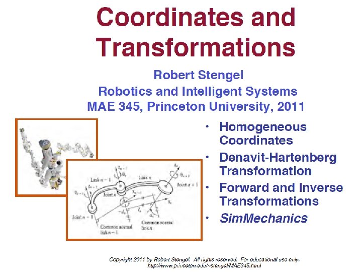 Sources • • Robert Stengel Prof. Maja Mataric Dr. Fred Martin Bryce Tucker and former PSU students A. Ferworn, Prof. Gaurav Sukhatme, USC Robotics Research Laboratory Paul Hannah • Reuven Granot, Technion • Dodds, Harvey Mudd College
