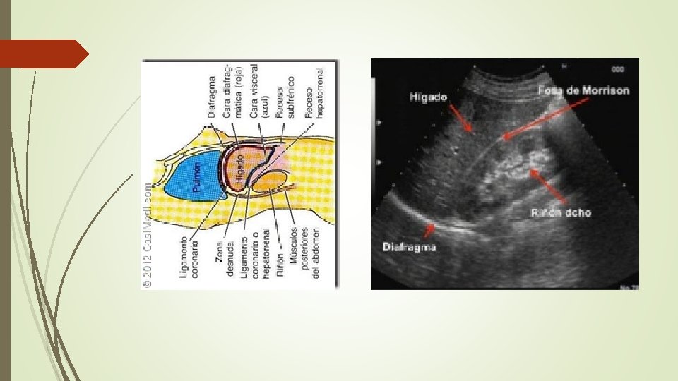 2. Liquido en polo renal inferior 3. Liquido debajo del diafragma