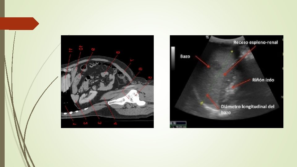 2. Liquido en receso esplenorrenal 3. Liquido polo inferior riñón izquierdo