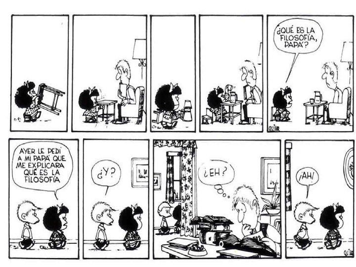EL PROBLEMA DE LA FILOSOFÍA • El problema de la filosofía en sí es ella misma. Ya que es un círculo vicioso en el que nunca se podrá llegar a una respuesta concreta ya que siempre surgirá una nueva y para resolver la primera habrá que hacer hincapié en las nuevas y probablemente, como hasta ahora, no encontrara respuesta certera y verdadera universalmente.