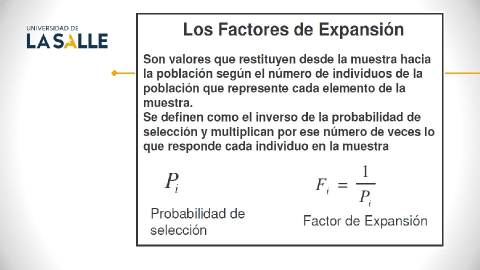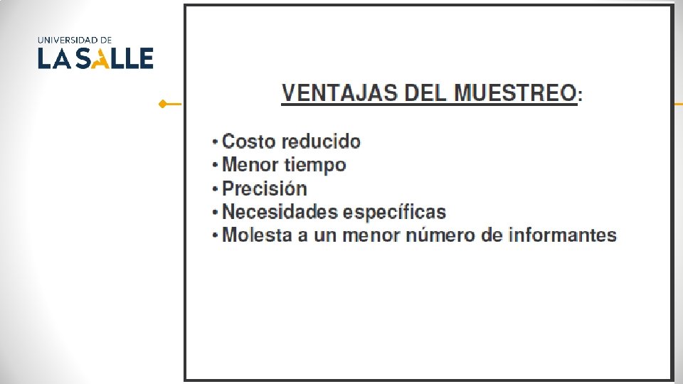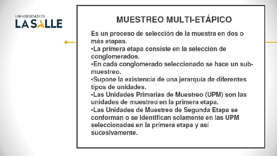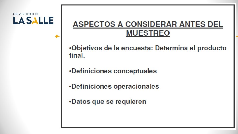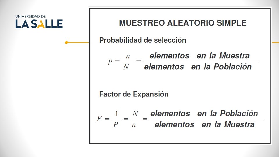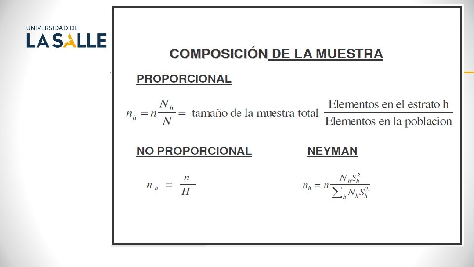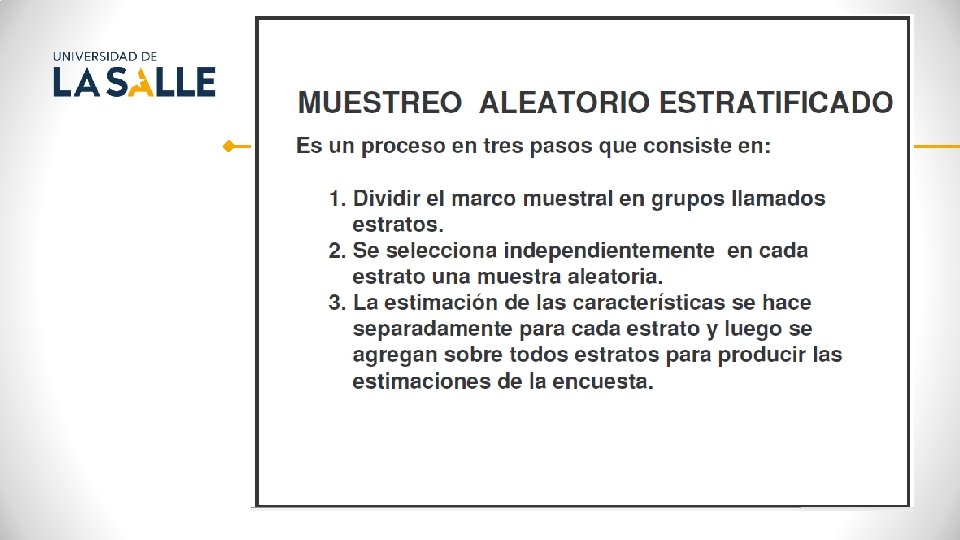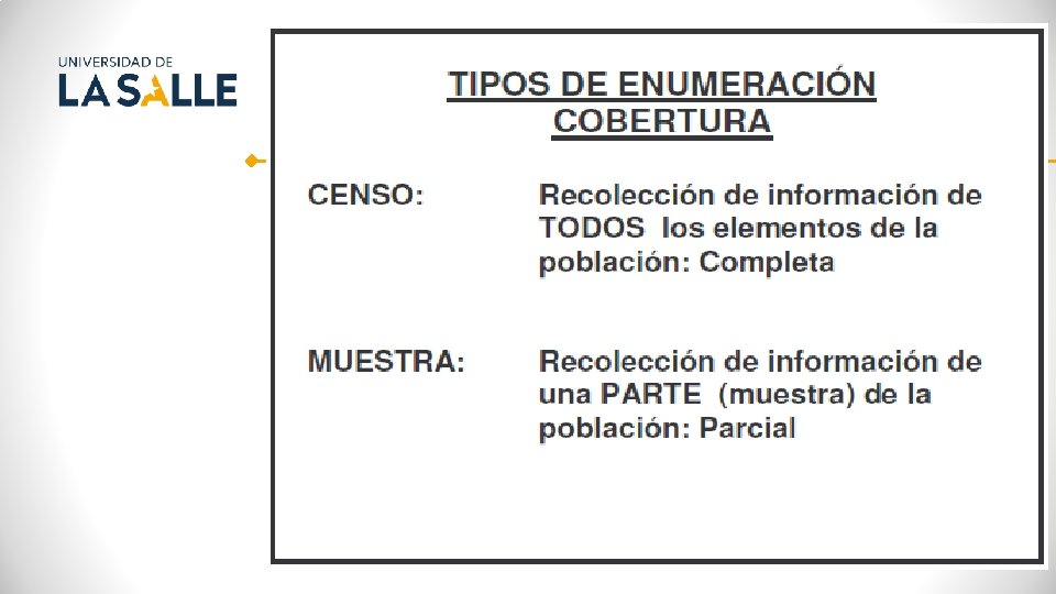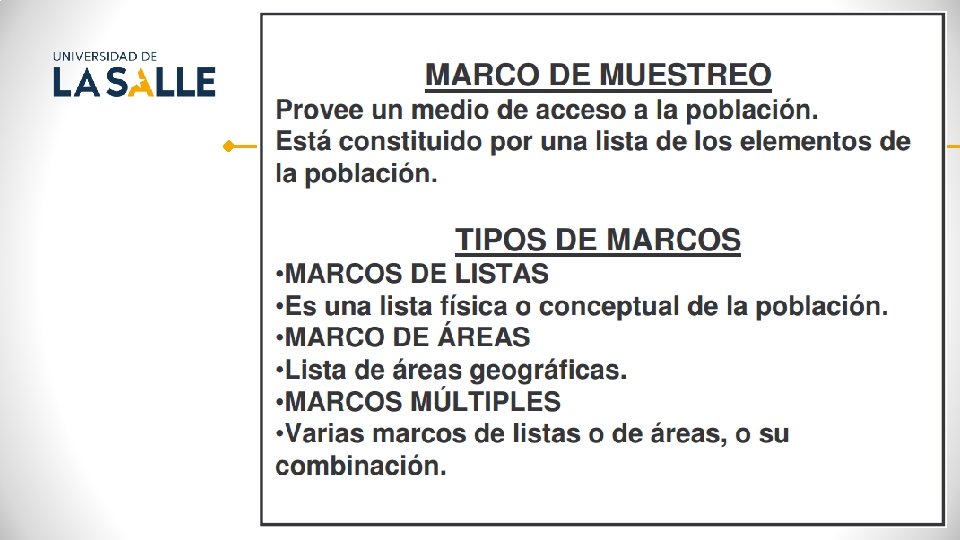 v Es el método estadístico por medio del cual se definen los criterios y técnicas que deben orientar el proceso de recolección u obtención de información”. v Es claro que el procedimiento de selección y el tamaño está cruzado por los objetivos de la investigación, las poblaciones son en lo general diferentes y por lo tanto, deberán utilizarse criterios distintos para seleccionar las unidades bajo estudio.