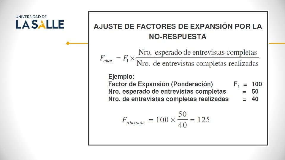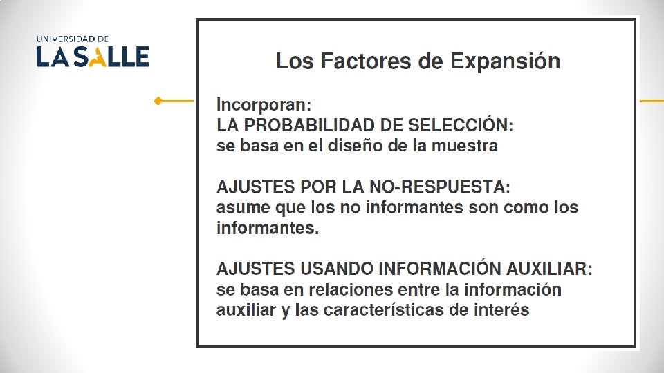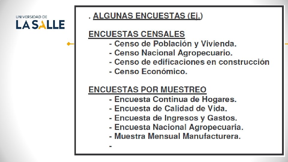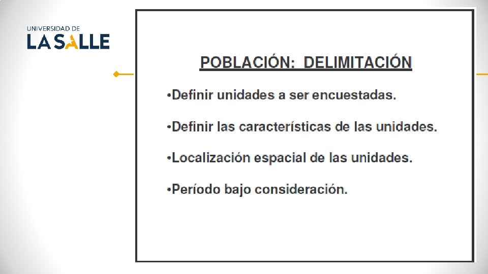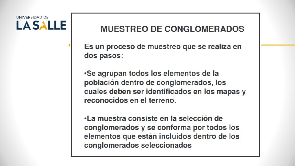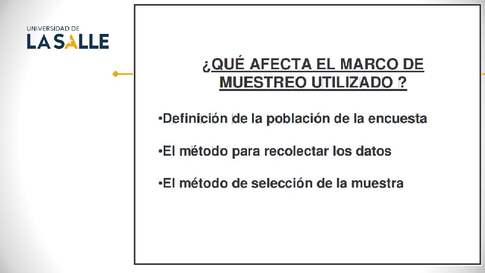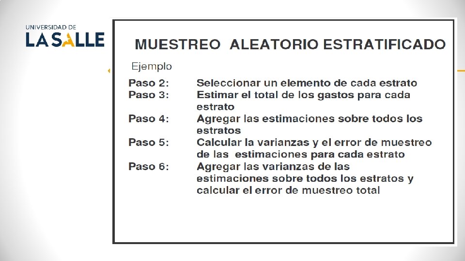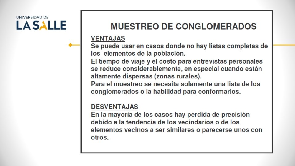 v Es el método estadístico por medio del cual se definen los criterios y técnicas que deben orientar el proceso de recolección u obtención de información”. v Es claro que el procedimiento de selección y el tamaño está cruzado por los objetivos de la investigación, las poblaciones son en lo general diferentes y por lo tanto, deberán utilizarse criterios distintos para seleccionar las unidades bajo estudio.
