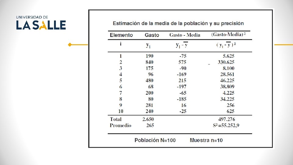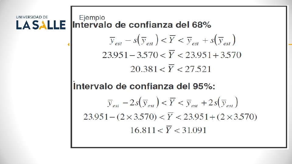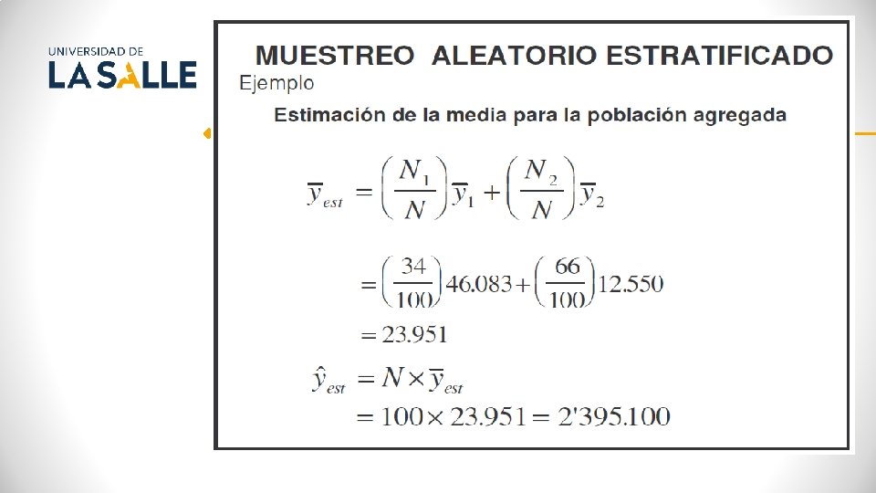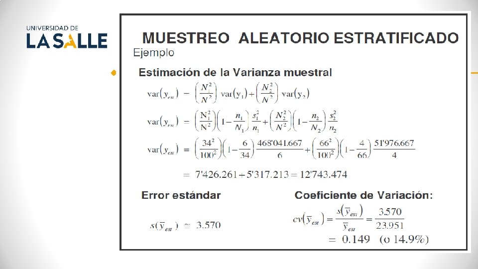 Solución: Evidentemente un tamaño de muestra no puede ser fraccionario por lo que se debe aproximar por exceso. El tamaño de muestra sería de 97.