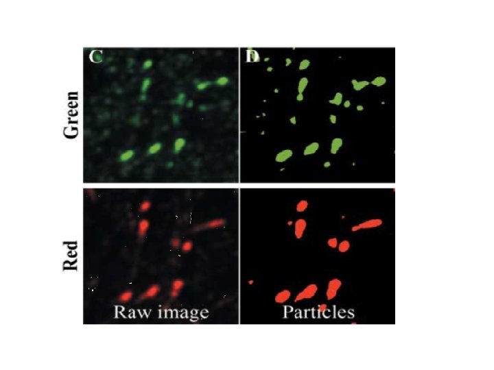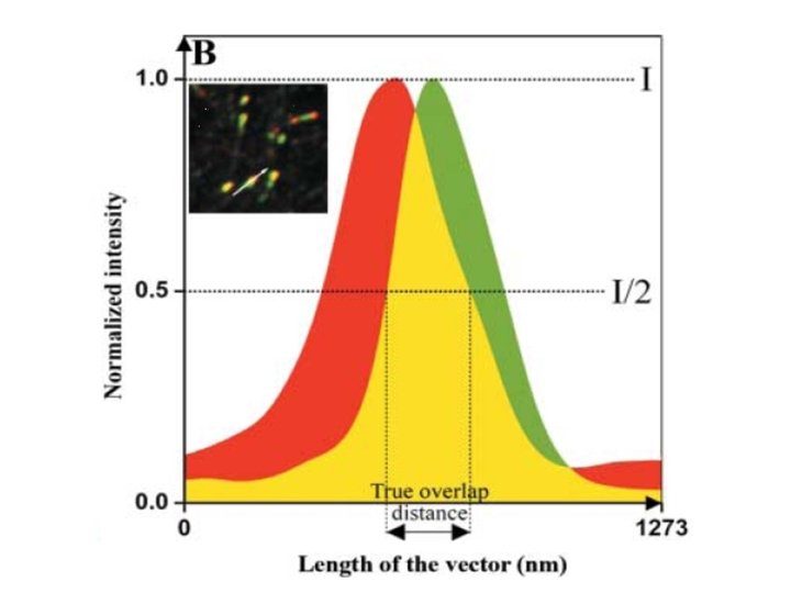 Introducción • ¿Están 2 fluorocromos localizados en la misma estructura en un volumen 3 D? – Considerando: • Distribución de fluorocromos en rango de nm. • Resolución del microscopio óptico cercano al μm.