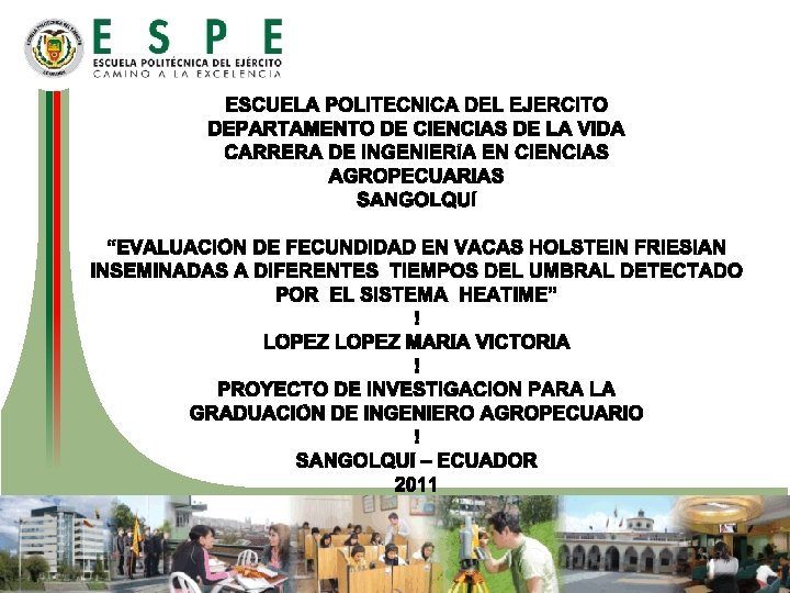 OBJETIVOS Específicos General • Evaluar la fecundidad en vacas Holstein Friesian bajo diferentes rangos de tiempo posterior al umbral de celo detectado por el sistema HEATIME. • Comparar el porcentaje de fecundidad de vacas inseminadas entre 10 a 12 horas, de 12 a 15 horas y de 15 a 18 horas posteriores al umbral del celo detectado con el sistema HEATIME ®. • Conocer el umbral óptimo de celo para determinar la hora de mayor actividad. • Determinar la incidencia del sistema HEATIME® sobre los parámetros reproductivos. • Realizar un estudio económico preliminar. • Divulgar los resultados en medios de información técnica especializada a los interesados para su conocimiento y aplicación.