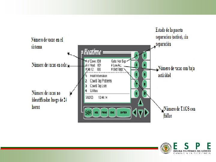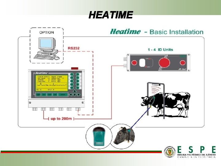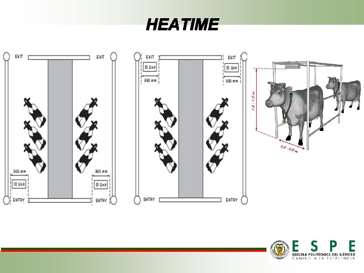MATERIALES Selección de Animales Maquinaria y Equipo Herramientas para la I. A. El Sistema HEATIME incluye las siguientes unidades: Guantes Caja de Control HEATIME 151 vacas Holstein-Friesian, producción y posparto que presentaron celo. Unidad de ID (lectores) H-TAGS; 90 collares con sensores cada uno Luz Indicadora Exterior (opcional) Tijeras Termómetro Materiales de oficina y Toma de Datos Cuaderno de campo Corta pajuelas Computador, Catéter programa INTERHERD Pistola de I. A. Pajuelas Tanque de nitrógeno Cámara Fotográfica