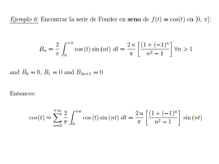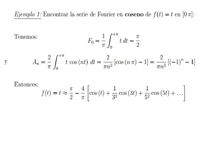 En este punto no vamos a entrar, ya que nos interesa el aspecto matemático del problema. ¿Cómo podemos describir uno de estos sistemas? . El principio que vamos a aplicar es el de divide y vencerás. !!. ¿Cómo así. ? ? . . Se procede a dividir el problema en términos sencillos utilizando senos y cosenos y después combinar funciones de este tipo para obtener sistemas más complicados. Ejemplos varios