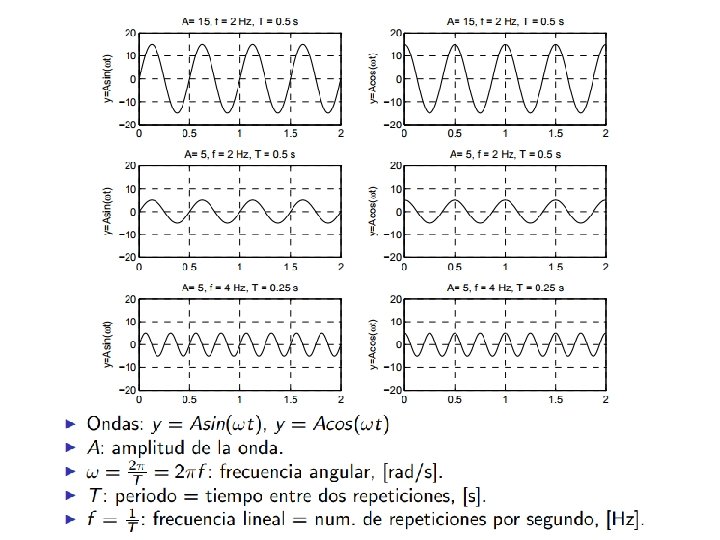 Las ondas mecánicas, ya sean transversales o longitudinales, se pueden representar por medio de las funciones trigonométricas. El sonido son ondas longitudinales, donde la amplitud tiene que ver con la intensidad o volumen y la frecuencia está relacionada con el tono y con la posición en la escala musical.