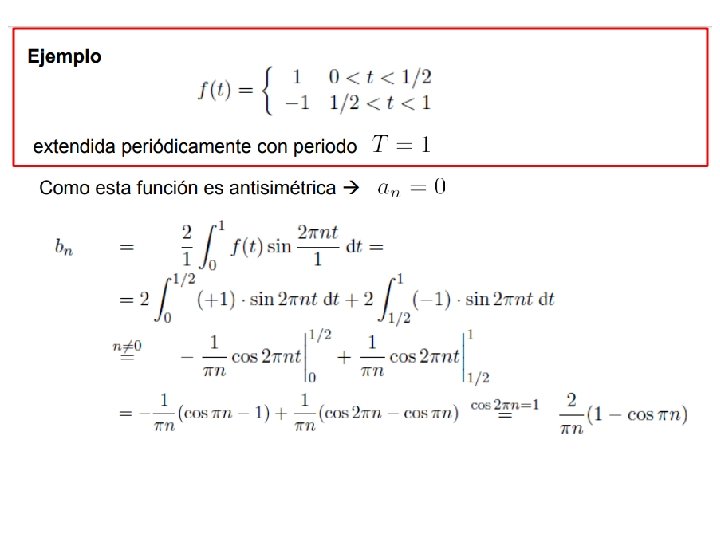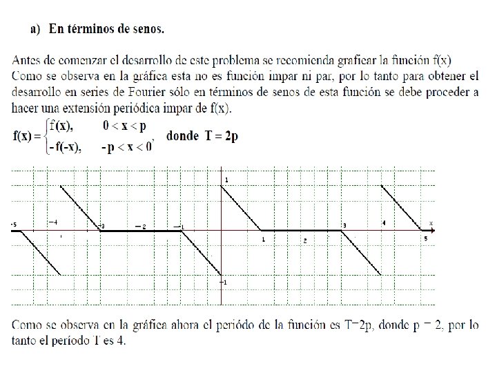 Por ejemplo, si consideramos una función no periódica tal como la mostrada a continuación. Podemos extenderla, simplemente repitiendo la función, tal como se muestra, en cuyo caso no hay simetría respecto al eje y