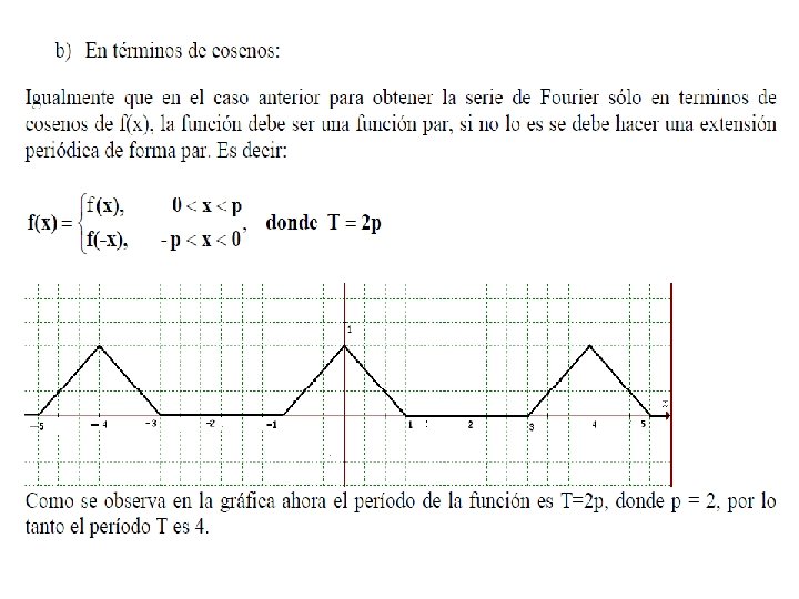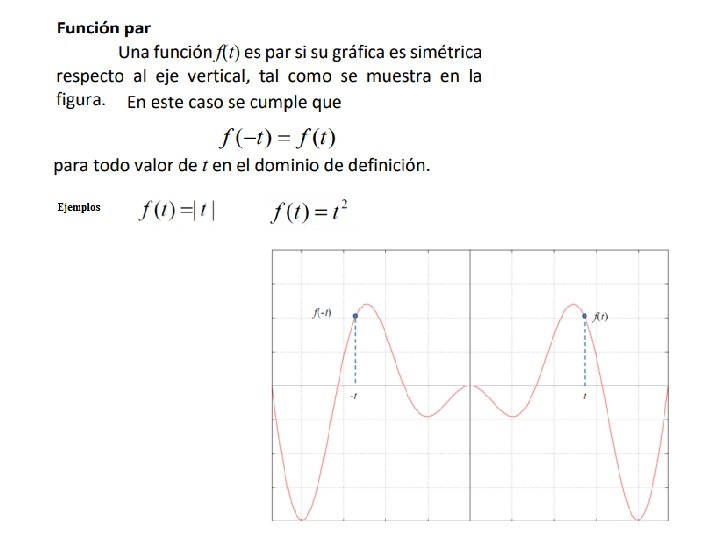 Otra opción puede ser que como vemos presenta simetría impar, ya que f(-t) = -f(t). Hay otra opción de extensión, mostrada a continuación, que presenta simetría par, ya que f(-t) = f(t).