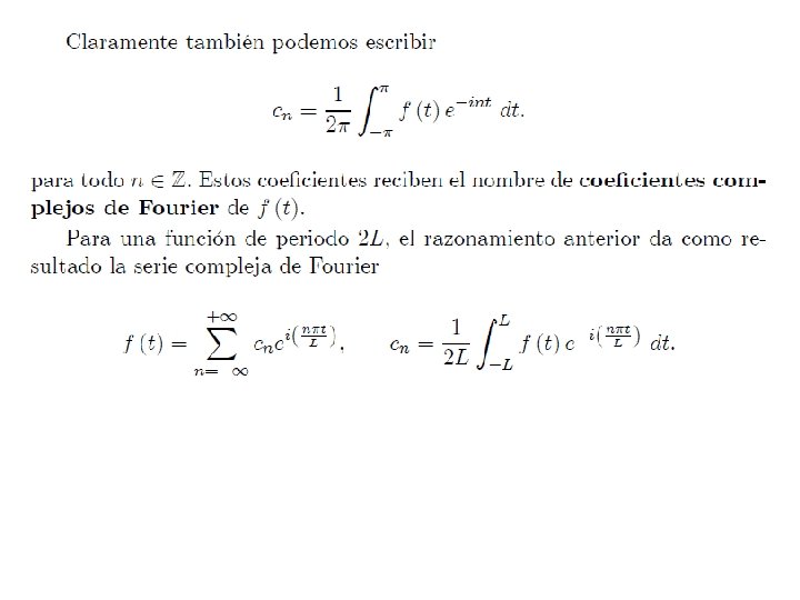 Las series de Fourier son series con términos coseno y surgen en la tarea práctica de representar funciones periódicas generales. Como aplicación constituyen una herramienta muy importante en la solución de problemas en los que intervienen ecuaciones diferenciales ordinarias y parciales. Por otra parte, la transformada de Laplace es una de las más importante en ingeniería. Desde el punto de vista de las aplicaciones, las siguientes en importancia serían quizás la transformada de Fourier, aún cuando su manejo resulta un tanto más difícil que la transformada de Laplace.