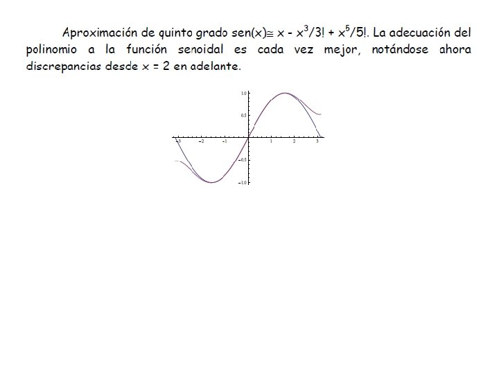 Introducción Los polinomios y series de Taylor nos permiten a menudo aproximar una función por polinomios, o hallar una serie de potencias que converja a la función. Los polinomios en general y las series de Taylor en particular son las funciones reales más fáciles de evaluar; por esta razón, cuando una función resulta difícil de evaluar con exactitud, de allí que se intenta buscar un polinomio que se le parezca y se usa dicho polinomio en su lugar. En este proceso es obvio que se pierde la exactitud de cálculo y se gana la operatividad, pues ni modo…aquí un ejemplo.