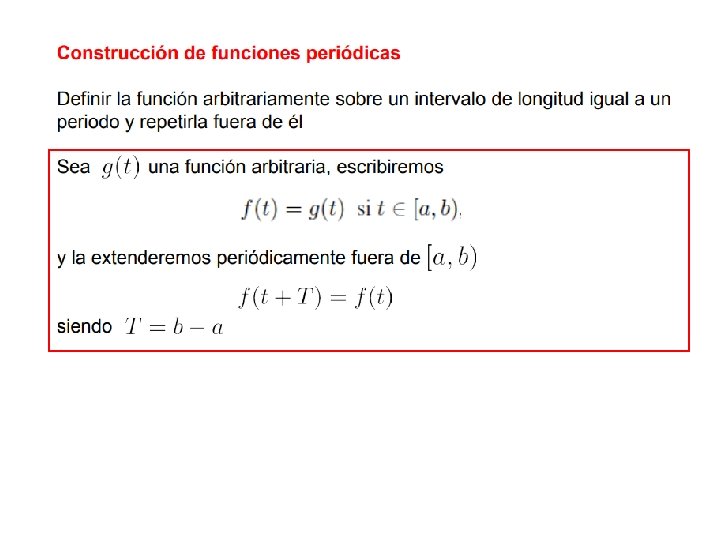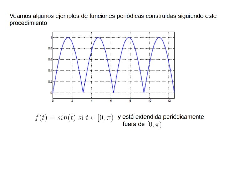 Por otro lado, si consideramos la figura que se muestra a continuación, vemos que la función representada del lado izquierdo no presenta periodicidad, sin embargo se le puede introducir una periodicidad, logrando una extensión periódica de la función, que se muestra.