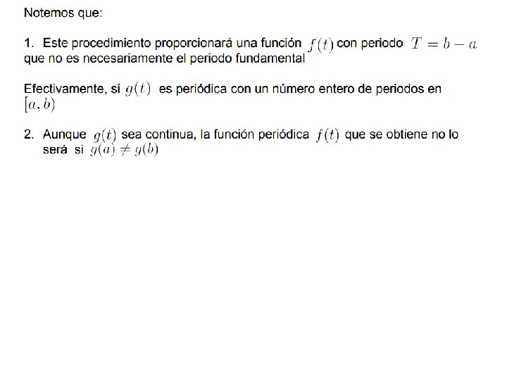 Vale la pena mencionar que cuando tenemos situaciones físicas (reales), las tres últimas condiciones de Dirichlet casi siempre se cumplen, no así la primera de ellas, ya que no todas las funciones son periódicas. Sin embargo, en muchas situaciones es posible representar una función no periódica como una serie de Fourier mediante la manipulación de la función para transformarla en una forma periódica, lo cual veremos más adelante.