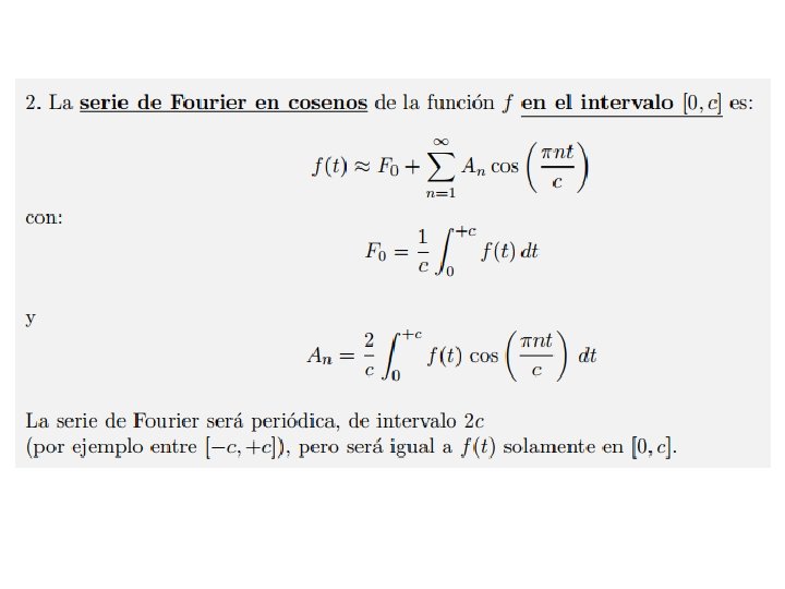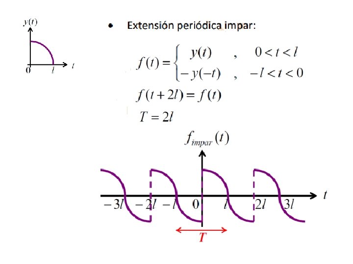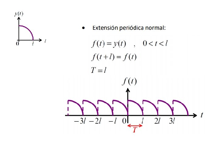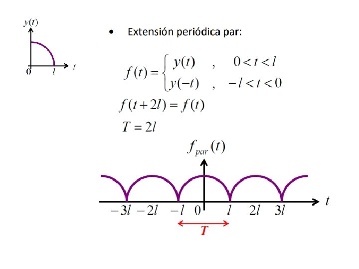 Como puede verse, para la misma función f(t), las diferentes extensiones implican modificar el periodo, en el caso recién mostrado, un dominio inicialmente entre 0 y L, se mantiene sin cambios para una extensión normal, pero se duplicó para las extensiones par e impar.