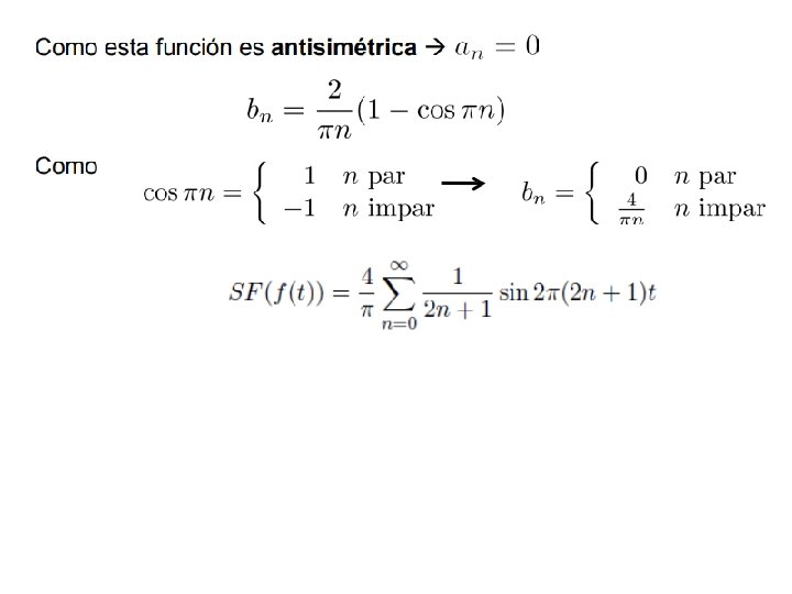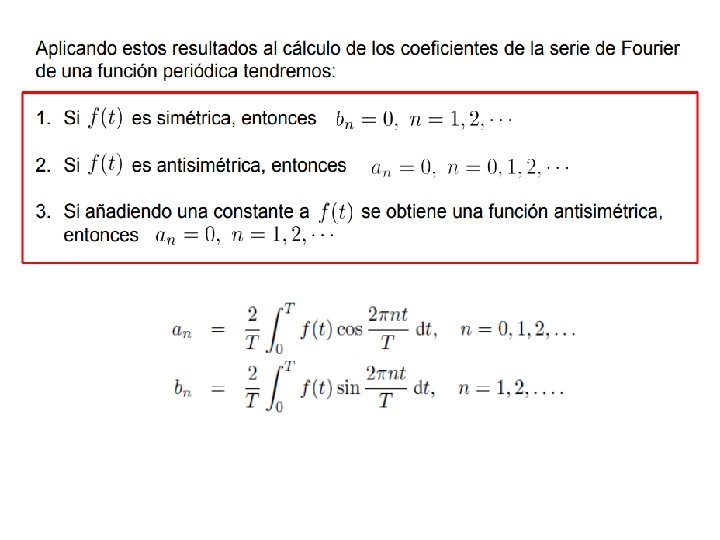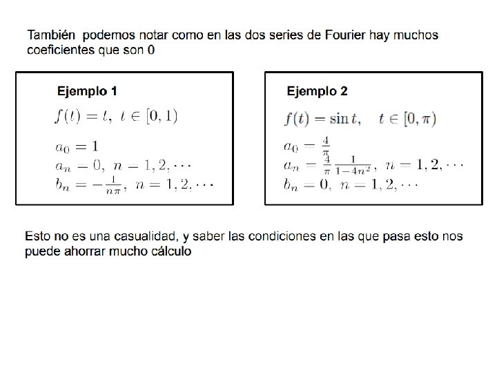 Como pudimos ver, a menudo estamos en libertad de ampliar la función de varias maneras; sin embargo, normalmente es preferible usar alguna de las simetrías vistas anteriormente (par o impar) para la extensión periódica, en lugar de una extensión periódica normal; La ventaja es que el uso de una función con cierta simetría (par o impar) nos proporcionará coeficientes cero de cualquiera de los an o bn de la expansión, lo que puede proporcionar una expansión más sencilla de la serie de Fourier correspondiente.