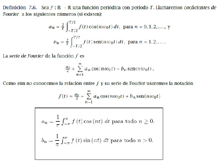 A la cantidad que aparece en las expresiones anteriores se le conoce como frecuencia fundamental y está dada por donde T es el periodo de la función f(t)