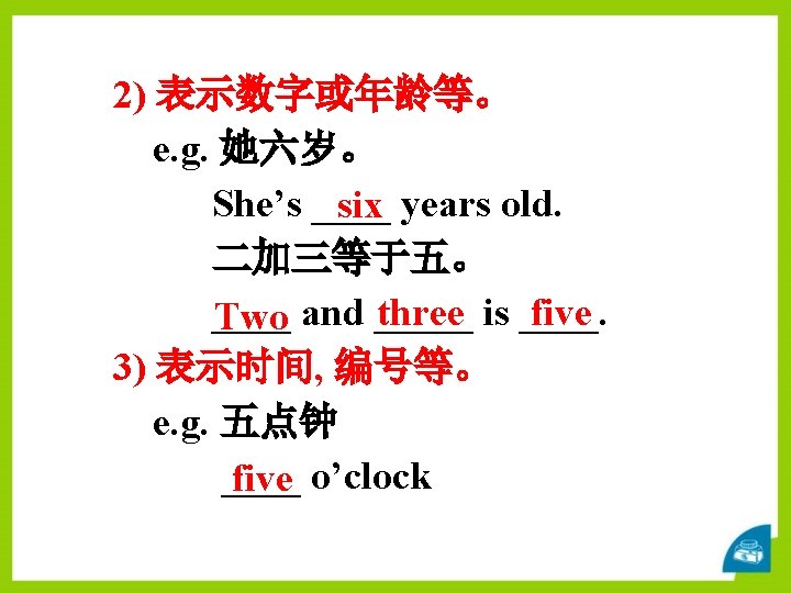 Ask for and give your 1 c phone numbers. What’s your phone number, Li Xin? It’s 281 -9176.