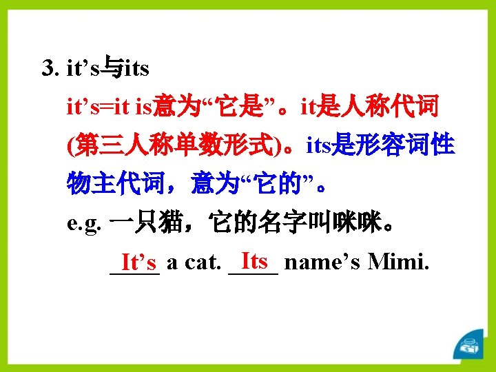 4. Her first name is Linda. (对划线部分 提问) ______ her _____ What’s first name? 5. I’m Eric Smith. (变为一般疑问句) Are ____ you Eric Smith? ____