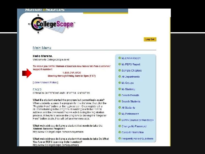 My Account Disappeared Ø Students try to log into the instructor account. Make sure that you have /ccs/ in the URL. Ø http: //www. collegescope. com/ccs/sierracollege Ø Don’t use Google to find College Scope. You may end up in a different college account.