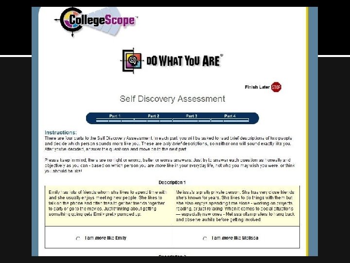 Part I: Getting Started with the Content Survey and Chapter 1 Part II: Common Login Problems and Easy Solutions Part III: Introducing Do What You Are and Chapter 2 Part IV: Introducing the PEPS learning style inventory and Chapter 3