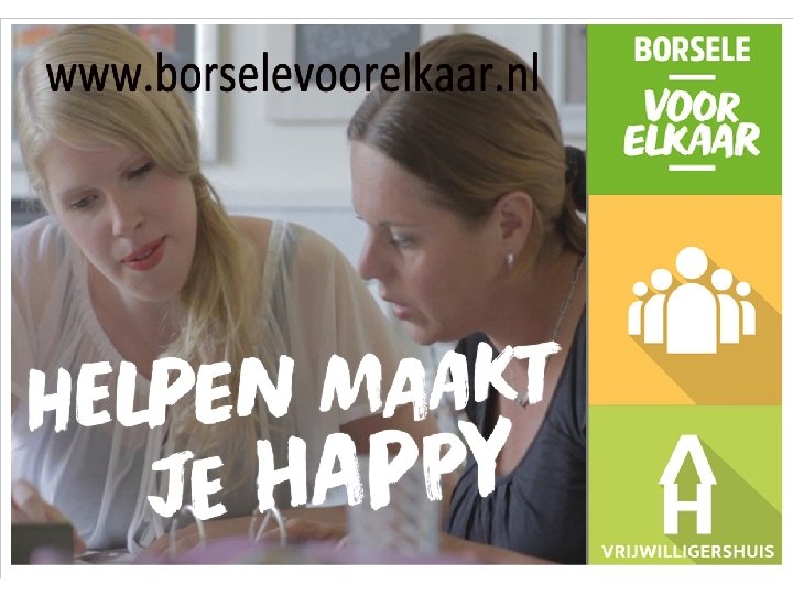 Opgave komende periode • • In contact/verbinding Grip krijgen op gedecentraliseerde taken Balans bureaucratie beteugelen/rechtmatigheid Transformeren sociaal domein Vergrijzing/ontgroening Eenzaamheidspreventie Gezonde en actieve leefstijl Borsele op de kaart!