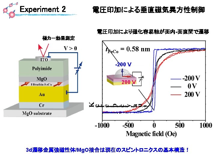 Experiment 3 トンネル磁気抵抗素子における電界磁気異方性制御 Fe(3 nm)/Mg. O/Fe(0. 3 nm)/Fe. B (1. 5 nm) /Ta/Ru Hex Vbias = 30 m. V