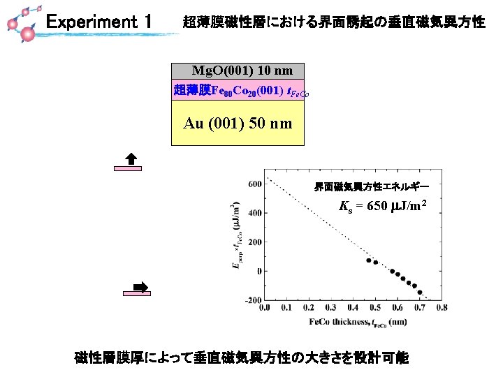 Structure Slope (f. J/Vm) Ref. Au / Fe 80 Co 20 (0. 4 nm) / Mg. O -37 T. Nozaki et al. APL 2010 Ta / Co 40 Fe 40 B 20 (1. 33 nm) / Mg. O -33 M. Endo et al. APL 2010 Au / Fe 80 Co 20 (0. 7 nm) / Mg. O -31 Y. Shiota et al. APEX 2011 Au/Fe. Pt (1. 5 nm) /Mg. O 19 T. Seki et al. APL 2011 Ta / Co 60 Fe 20 B 20 (1. 2 nm) / Mg. O / Al 2 O 3 -11 K. Kita et al. JAP (2012) Ta / Co. Fe. B (1. 3 nm) / Mg. O -50 W. –G. Wang et al. Nat. Mater. (2012) Mg. O / Co. Fe. B (1. 8 nm) / Ta -33 S. Kanai et al. APL (2012) Ru / Co. Fe. B (1. 4 nm) / Mg. O 18 Y. Shiota et al. APL (2013) Mg. O / Fe. B (1. 5 nm) / Mg. O -108 T. Nozaki et al. APEX (2013) Mg. O / Fe(0. 3 nm) / Fe. B (1. 5 nm) / Ta -105 This study Vacuum / Fe (15 ML) / Vacuum -20 C. -G. Duan et al. PRL 2008 Vacuum / Fe (1 ML) / Vacuum -33 K. Nakamura et al. PRL 2009 Pt / Fe(1 ML) / Pt (1 ML) / Vacuum -72 M. Tsujikawa et al. PRL 2009 Cu / Fe (9 ML) / Mg. O 100 M. K. Niranjan et al. APL 2010 Au / Fe(2 ML) / Mg. O 11. 6 M. Tsujikawa et al. JAP 2012 Theory