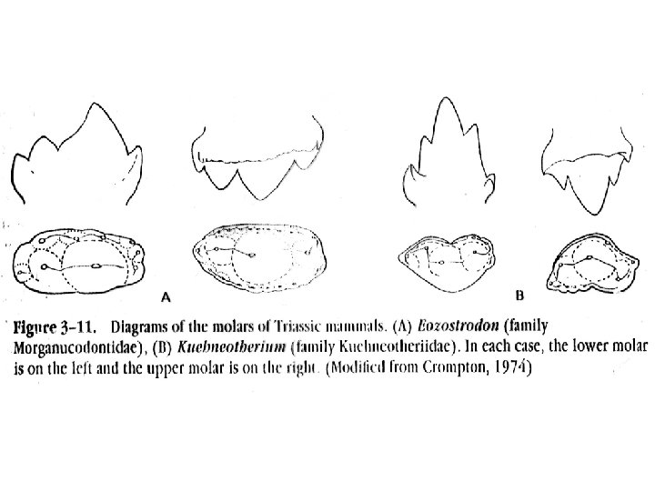 Cretaceous Mammals FIGURE 17: Molar of Aegialodon, an early Cretaceous tribosphenidan (family Aegialodontidae) Parts c and d modified from Romer, A. S. Vertebrate Paleontology. University of Chicago Press, 1966.