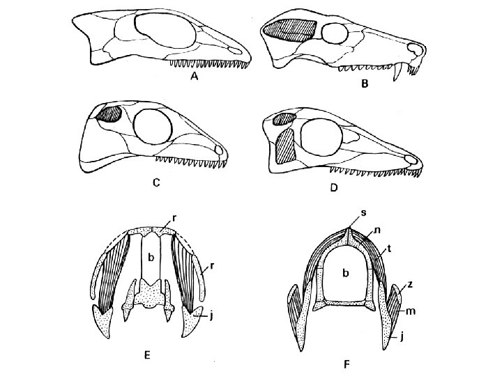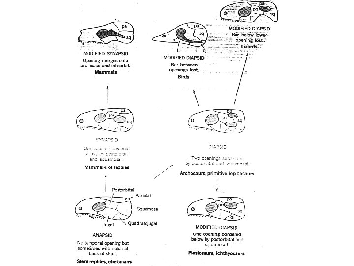Synapsid Characters • Maxilla contacts quadratojugal bone • Caniniform maxillary teeth • Narrow neural arches on trunk vertebrae