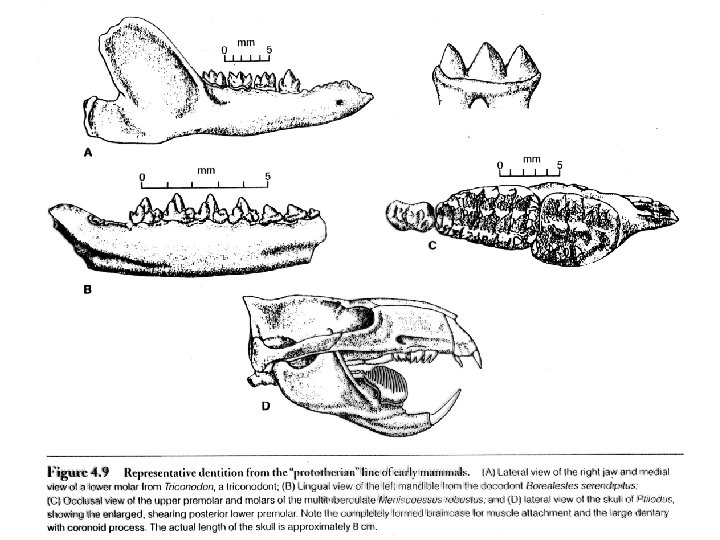 Early Mammals • Small bodied (e. g. 20– 30 grams) • Premolars and molars in cheek teeth • Large brain size • Probably insectivorous diet • Probably nocturnal and arboreal • Lactation and suckling likely