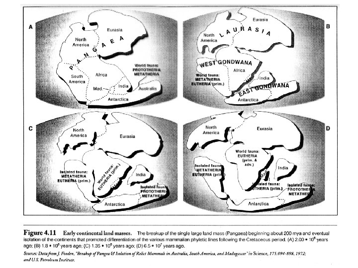 Cretaceous Mammals • Much biotic interchange between continents in Jurassic—sets the stage • Flowering plants become dominant flora • Insects radiate with flowering plants in Cretaceous • Dinosaur fauna begins to decline • Mammal faunas begin to radiate