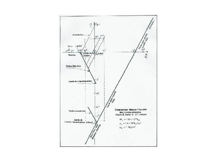 Que dire d’une telle étoile géante en cours d’effondrement ? • Amorçage de la Fusion Thermonucléaire : T = 107 K R 7 Masse Solaire = 7 x 700000= 4. 9 x 106 km • Fin de la phase thermique : • T = 3 x 109 K R = 4. 9 x 106 x 107 / 3 x 109 =1. 63 x 104 km • Ensuite effondrement et disparition derrière l’horizon, dans la singularité gravitationnelle • On montrera plus loin que le rayon de l’horizon est de 21 km