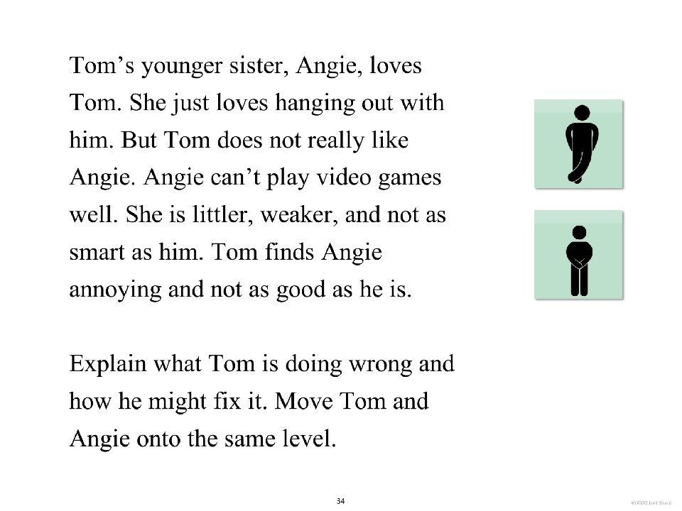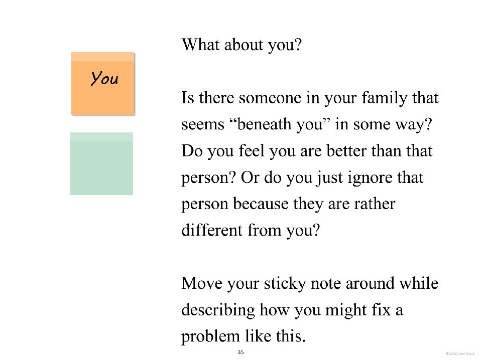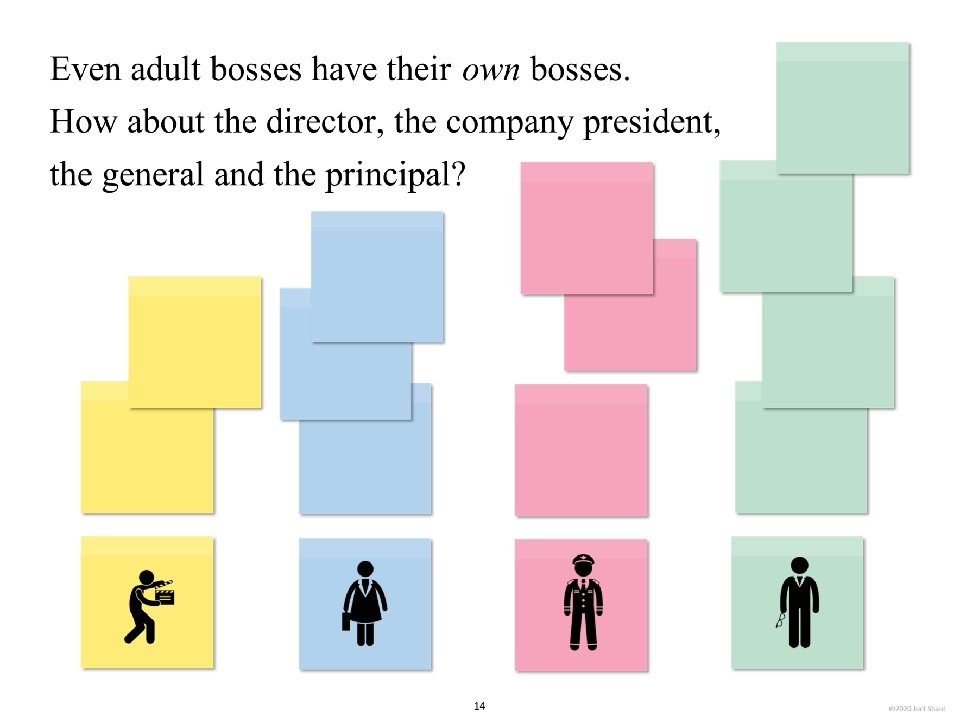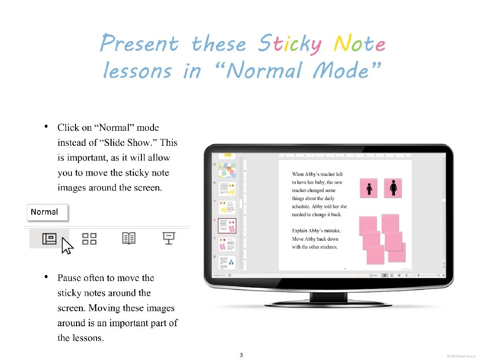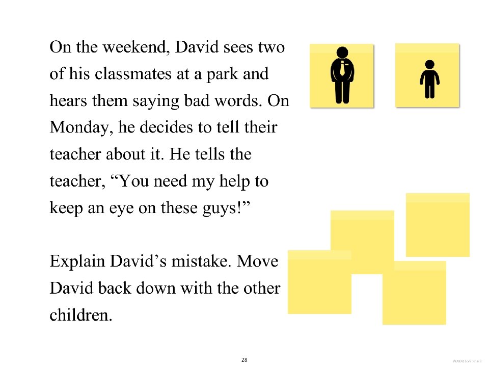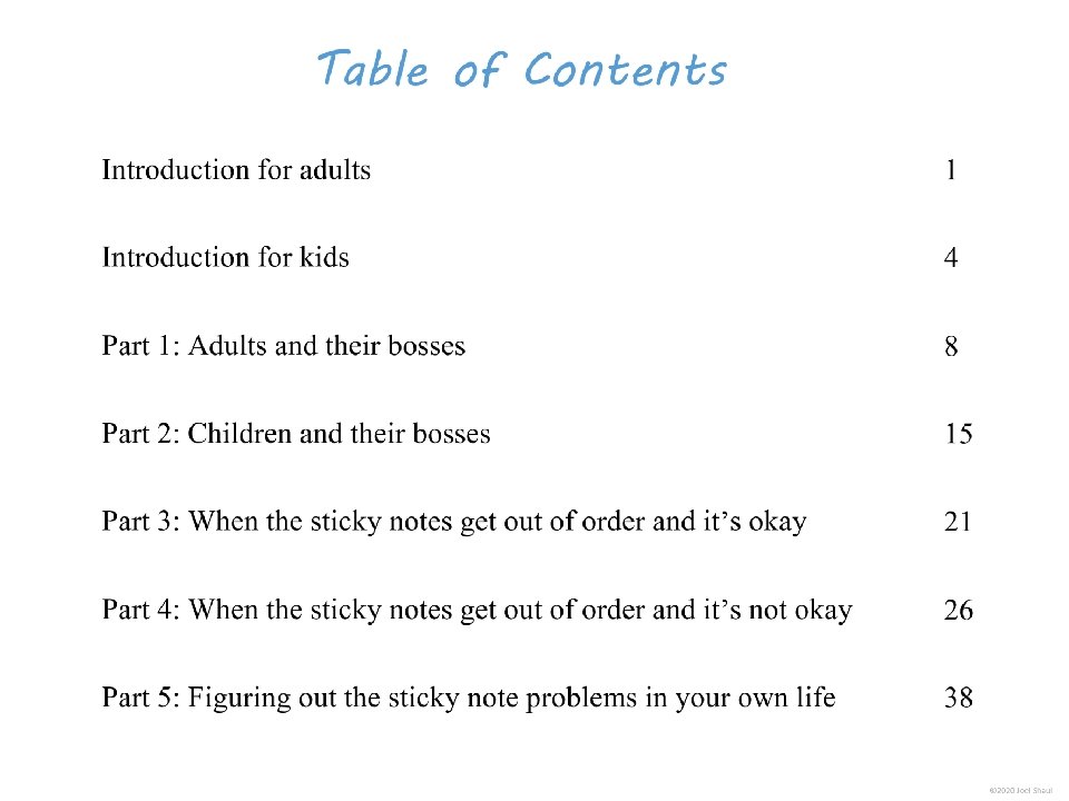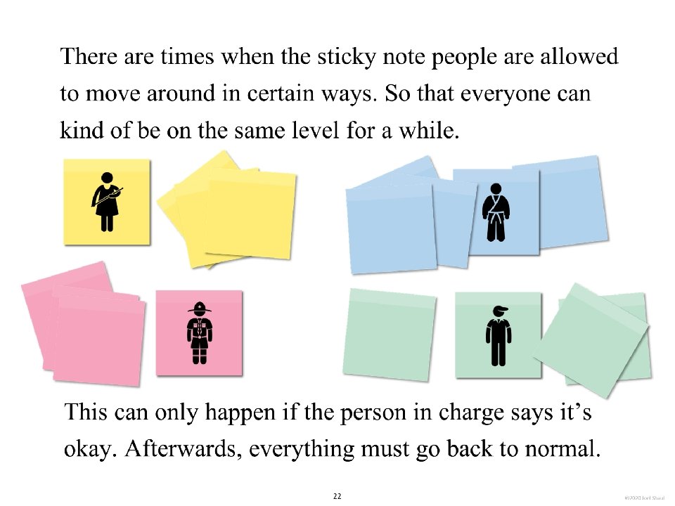 Introduction Children on the autism spectrum often have a lot of difficulty figuring out how they fit in socially within their classrooms, peer groups and families. The subtleties of social ranking can be really confusing. Children with autism often need our help to cut through the intricacies of the various social hierarchies affecting them. *Undervaluing their own essential social value. Children with autism may experience repeated disappointments trying to fit in and be accepted. This can make them feel they are somehow beneath other people and that their fate is to have low social ranking. Ways to use these materials In my own experience working with children in counseling and classroom contexts, I have found it very useful to use hands-on visuals like sticky notes to help increase awareness of the various hierarchies in their lives. Later, I found that this therapy/teaching method works well on a computer screen. I designed Learning about people by playing with sticky notes so that teachers, mental health professionals and parents can try this simple learning method that I have personally found very helpful. I designed this to be a lot like a book, but with moveable parts. Rather than just reading it, pause frequently to move the sticky note images around. Avoid using the big word “hierarchy” unless you are certain that the children understand it. Pay special attention to Part 5, “Figuring out the sticky note problems in your own life. ” This is where you will work closely with children to have them put together sticky note models of various social hierarchies that are giving them trouble. Kids on the spectrum misperceive social hierarchies in different ways and for different reasons. Here are some examples. If you are using these sticky notes resources with children in person, be sure to get out some real sticky notes for breakout activities. They sell very large sticky notes and those are especially nice for drawing on as well as writing. *Failure to acknowledge authority. A child on the spectrum striving to cope with feelings of anxiety might feel compelled to impose their own order on perplexing social situations, effectively putting themselves in charge. I hope that these playful materials help your students and clients with issues they find troubling and confusing. *Failure to return to formality following a period of informality. A child with ASD can become confused when adults are fun and silly but then expect the child to return to the original formal and conventional adult/child relationship. Joel Shaul, LCSW 2 © 2020 Joel Shaul