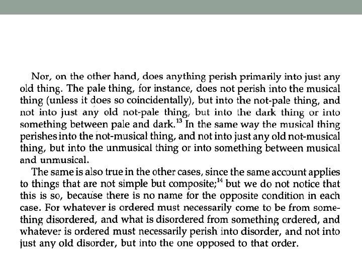 From the universal to the particular • The universal • The particular • The individual is known before the universal (Analytic Posterior 2. 19) • What we perceive is individual (Nicomachean Ethics 7. 4, 1147 a 26) • “The natural course is first to give a general account and then consider the peculiarities of particular cases. ” (Charlton, 52) In Physics Aristotle is concerned about the principles of physical objects generally, without distinguishing products of nature and products of art. “In a way this is reasonable: having set up his general form-matter distinction, Aristotle can later inquire into the formal and material elements in different sorts of thing. ” (Charlton, 52)