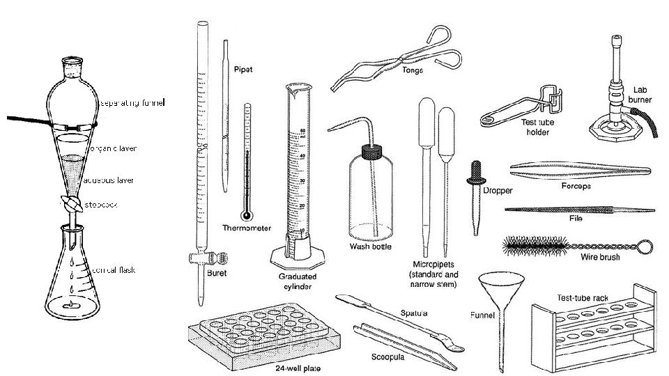Practical Techniques • There are two types for working in the laboratories to prepare, synthesize new compounds, purifying, and/or identification (separation) of compounds: • Instrumental (IR, 1 H-NMR, 13 C-NMR, UV, TLC, … etc. ) • Manual (Boiling Point, Melting Point, Solubility, sodium fusion, extraction, distillation, … etc. )