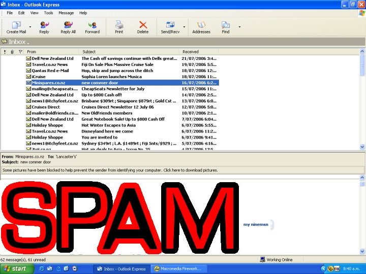 � Avoiding Spam: Home 1. Use your ISP email address for only your closely trusted acquaintances and friends, and web-based email accounts for everyone else. 2. Use programs such as Norton Antispam and Mc. Afee Spam. Killer to protect your email inbox. 3. Spam can be reported to ISP’s, who will help stop the problem. 4. Use different email accounts for different purposes, e. g. business email, personal email, website accounts, blogging.